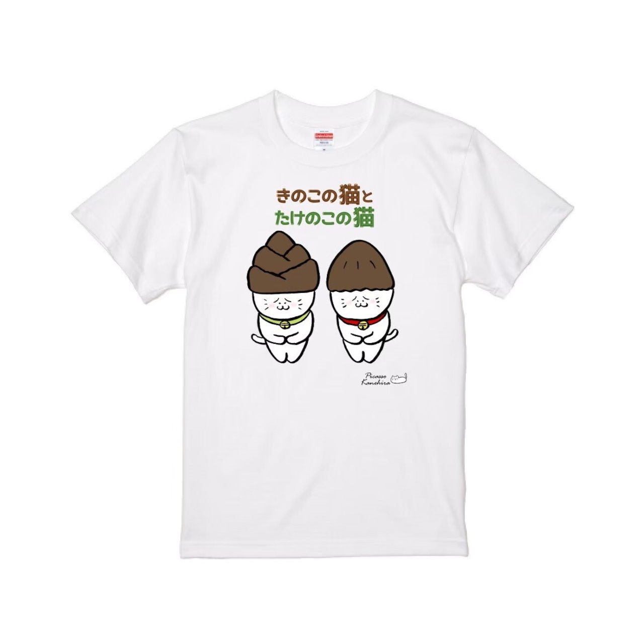【期間限定】きのこの猫たけのこの猫Tシャツ(ホワイト)【受注販売】※送料込み